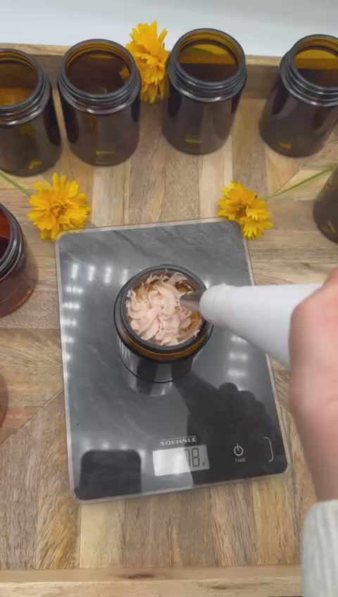 Our Calendula Body Butter combines the richness of botanical and organic ingredients to deeply hydrate, protect, and pamper your skin. Infused with Calendula-infused Olive Oil, Jojoba Oil, Bio Shea Butter, Bio Coconut Oil, Mango Butter, Cocoa Butter, Grapeseed Oil, Arrowroot Powder, French Pink Clay, and a very light touch of Geranium Rose Essential Oil, it leaves your skin feeling soft, smooth, and radiant.
